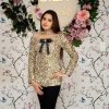 This exclusive jacket is available in a gold sequin fabric; this style has a bow detail on the neck and net panels.