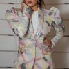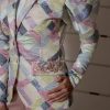 This exclusive jacket is fully lined and featured hand embellished detail on the pockets.