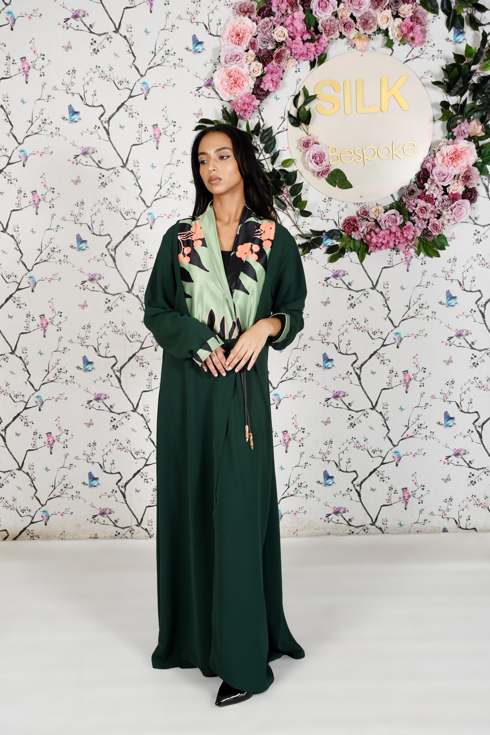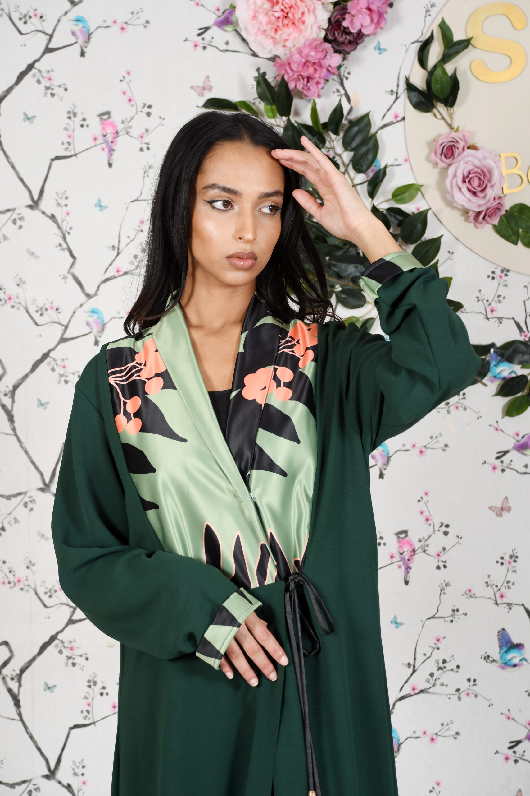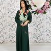 Green Crossover Abaya with Printed Fabric Bodice