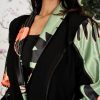 This classic jacket abaya has a jacket collar and printed fabric sleeve.