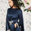 This exclusive abaya has detailed jewel work now on the belt and cuffs.