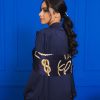 Navy abaya with printed shawl detail