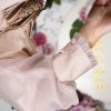 This exclusive abaya has an embellished shoulder and statement sleeves. We used a combination of jewels, beads and pearls in bronze.